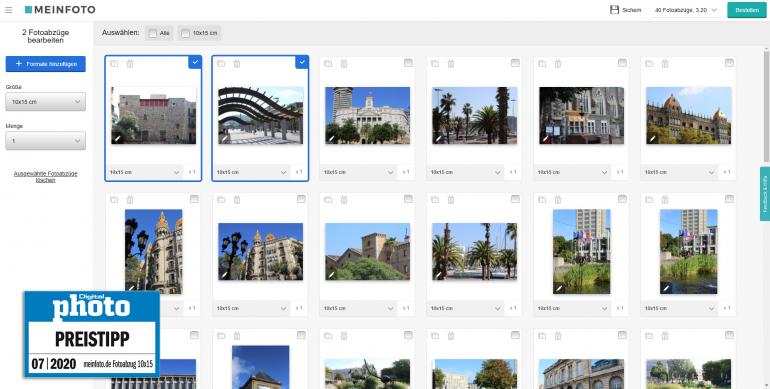 Bei meinfoto.de haben Sie die Wahl zwischen dem dynamischen 10er-Format, 10 x 13 und 10 x 15. Zudem können Sie festlegen, ob Sie matte oder glänzende Abzüge wünschen. Die Druckqualität ist hochwertig, der Preis spitze! Eine Bestellung per App ist nicht möglich.