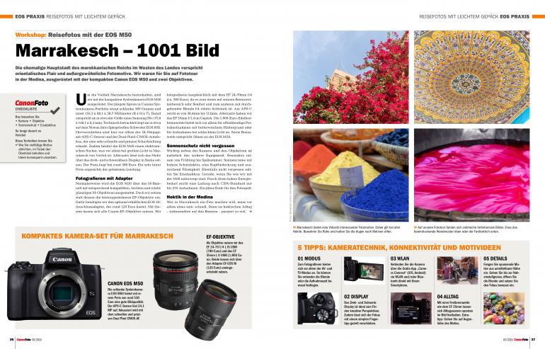 Weitere Themen: 11 stabile Reisestative im Test, Geld verdienen als Hochzeitsfotograf, Bildbearbeitung mit Photoshop und Lightroom, mit der Canon EOS M50 in Marrakesch u. v. m.