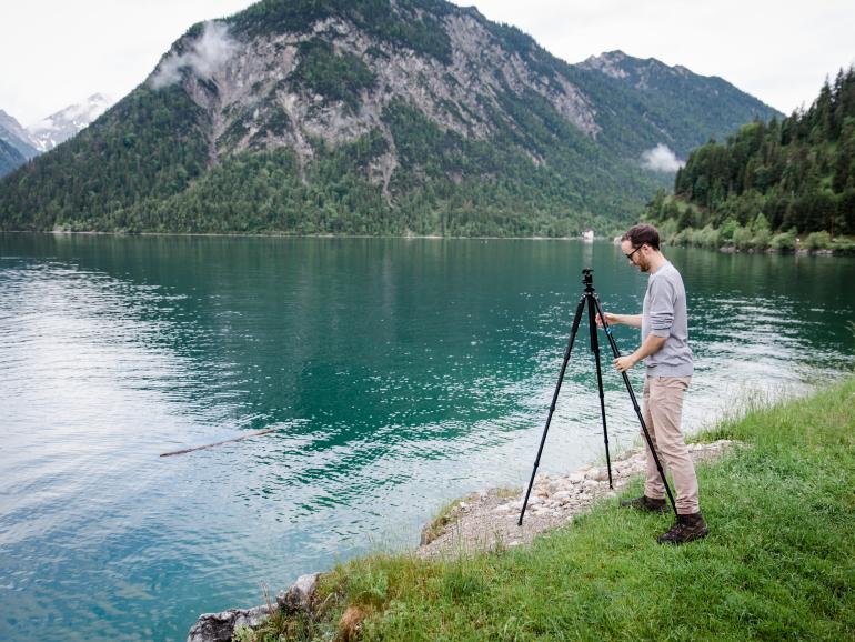 Das von uns in der Praxis getestete Cullmann Mundo 528M zählt zu den Allroundern, die diesen Spagat zwischen leicht und stabil meistern wollen. Mit einem derzeitigen Handelspreis von rund 167 Euro ist es vergleichsweise günstig und dennoch funktionsreich. Wir nehmen das Alu-Stativ mit auf eine Tour rund um den Plansee in Tirol: Der zweitgrößte See Österreichs bietet eine hervorragende Kulisse für Landschaftsfotos mit eindrucksvoller Spiegelung. Auch Experimente mit Graufiltern machen hier Spaß. Spätestens jetzt ist ein stabiles Stativ nötig, welches die Kamera samt Objektiv über eine Belichtungszeit von mehreren Sekunden sicher stabilisiert – und das haben wir mit dem Cullmann Mundo 528M dabei.
