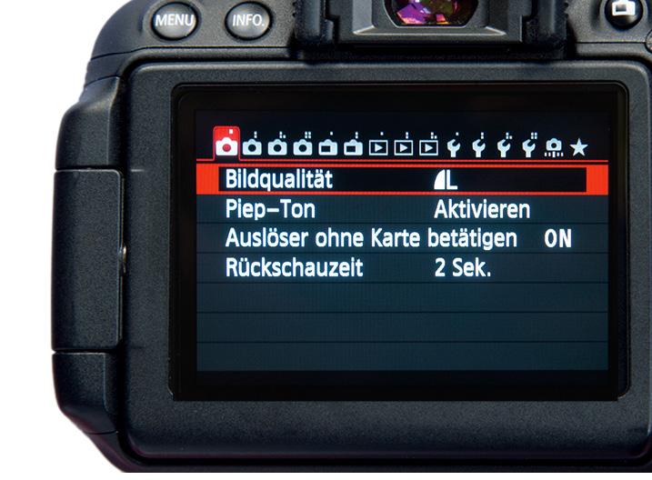Eine Kamera kann Fotos in zwei unterschiedlichen Bildformaten aufzeichnen: JPEG und RAW. Beide Formate haben ihre Vorund Nachteile. So benötigen JPEG-Dateien relativ wenig Speicherplatz, da sie bereits vor dem Speichern komprimiert werden. Eine RAW-Datei hingegen braucht viel Speicherplatz, so dass weniger Fotos auf die Speicherkarte passen. Außerdem vergeht mehr Zeit beim Speichern, was bei Actionaufnahmen beachtet werden sollte – hier macht es mehr Sinn, das JPEG-Format zu wählen. Zudem ermöglichen RAW-Dateien höchste Qualität und eine Menge an Details, müssen aber nachträglich mit einem RAW-Konverter (wie zum Beispiel Camera Raw oder Adobe Lightroom) entwickelt werden.