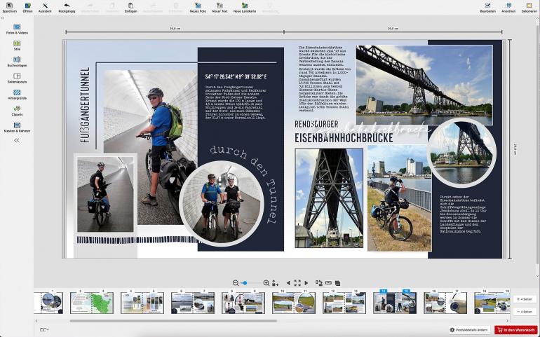 Auf 134 Seiten haben Helga und Hermann-Dieter Heising die Stationen ihrer Fahrradtour entlang des Nord-Ostsee-Kanals festgehalten. Hier erfahren Sie, wie sie ihre Eindrücke im CEWE FOTOBUCH aufbereitet haben – inklusive Schiffsromantik, Fischbrötchen und jeder Menge Gestaltungsideen.
