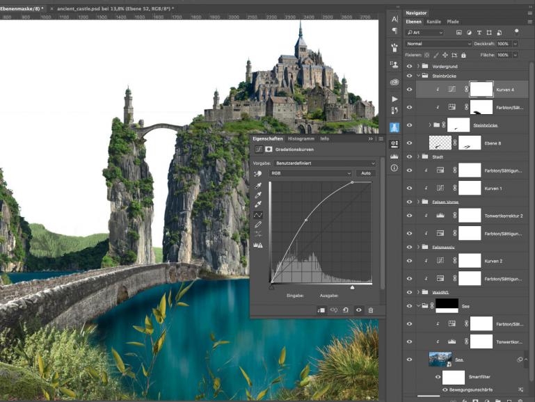 Gestalten Sie eine filmreife Fantasy-Szene: eine verwunschene Burg in luftigen Höhen auf einem massiven Felsen im Wasser, umgeben von weiteren Felsen und wilder Natur. Mit diesem Workshop erschaffen Sie ein Matte Painting, das durchaus irgendwann auf der Kino-Leinwand zu sehen sein könnte.