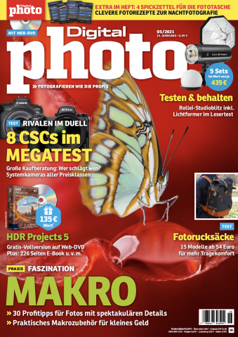Makrofotografie: 30 Profitipps für Fotos mit spektakulären Details sowie praktisches Makrozubehör für kleines Geld erwarten Sie in dieser DigitalPHOTO. Außerdem haben wir 15 Fotorucksäcke getestet, Systemkameras aller Preisklassen im Duell miteinander verglichen u.v.m. Alle Highlights im Überblick: 8 CSCs im Megatest Faszination Makro 15 Fotorucksäcke ab 54 Euro im Test Testen und behalten: Rollei-Studioblitz inkl. Lichtformer