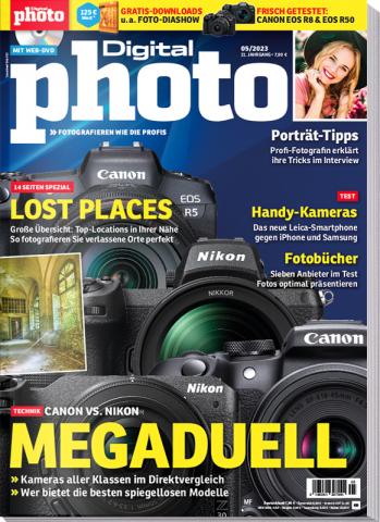 In der neuen DigitalPHOTO 05/2023 lassen wir Canon und Nikon Kameras verschiedener Klassen direkt gegeneinander antreten. In unserem großen Praxis-Spezial begeben Sie sich gemeinsam mit uns und unseren Profis in die spannende Welt der Lost Place-Fotografie und erhalte vielseitige Tipps und Tricks zu Locations, Ausrüstung, Aufnahmetechniken und Bildideen.