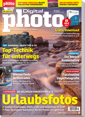 In der neuen DigitalPHOTO-Ausgabe 07/2022 dreht sich alles um perfekte Urlaubsfotos! Unsere Tipps zu Motiv, Licht, Bildgestaltung und Co. zeigen, wie es geht. Plus: Top-Technik für die Reise. Perfekte Urlaubsfotos Top-Technik für unterwegs Test: Reisestative Vogelfotografie Actioncams