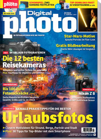 In der neuen DigitalPHOTO 07/2023 zeigen wir, wie Sie Ihre Urlaubsfotos (noch) besser machen und welche Kamera dafür in Frage kommt. Wir haben außerdem 30 Tipps für bessere Smartphone-Fotos für Sie zusammengestellt, die zeigen, dass Ihr Handy mehr kann, als „nur“ Schnappschüsse.