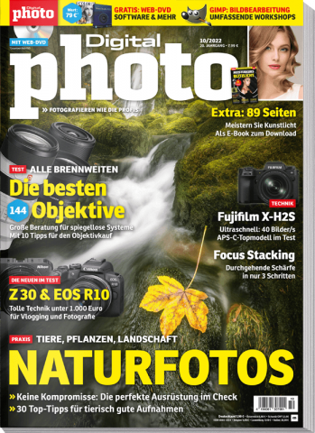 In der neuen DigitalPHOTO 10/2022 zeigt unser Natur-Spezial, wie starke Tier- und Pflanzenfotos entstehen – inkl. Ausrüstungstipps. Plus: Die besten 144 Objektive. Naturfoto-Spezial mit Ausrüstung im Check Große Beratung: 144 Objektive im Test APS-C-Topmodell: Fujifilm X-H2S im Test Bildbearbeitung mit GIMP