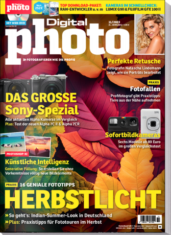 DigitalPHOTO 11/2023Wir liefern Ihnen in der neuen DigitalPHOTO 11/2023 16 Motivideen inklusive Aufnahme- und Ausrüstungstipps, die Sie direkt in der Natur Ihrer Nachbarschaft umsetzen können.Ausgabe kaufenOder in der Kiosk-App lesen