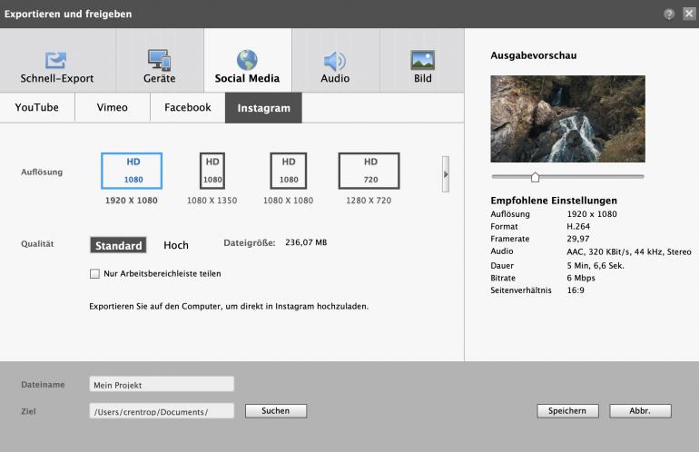 Dass es sich hierbei natürlich nicht um Studio-Software handelt, ist klar. Doch gerade für die Social-Media-Anwendung oder für den Heimgebrauch können Sie vom Leistungsumfang des niedrigschwelligen Video-Tools profitieren, das nicht zahlreiche Automatismen mitbringt, sondern auch den direkten Export nach Social Media erlaubt.